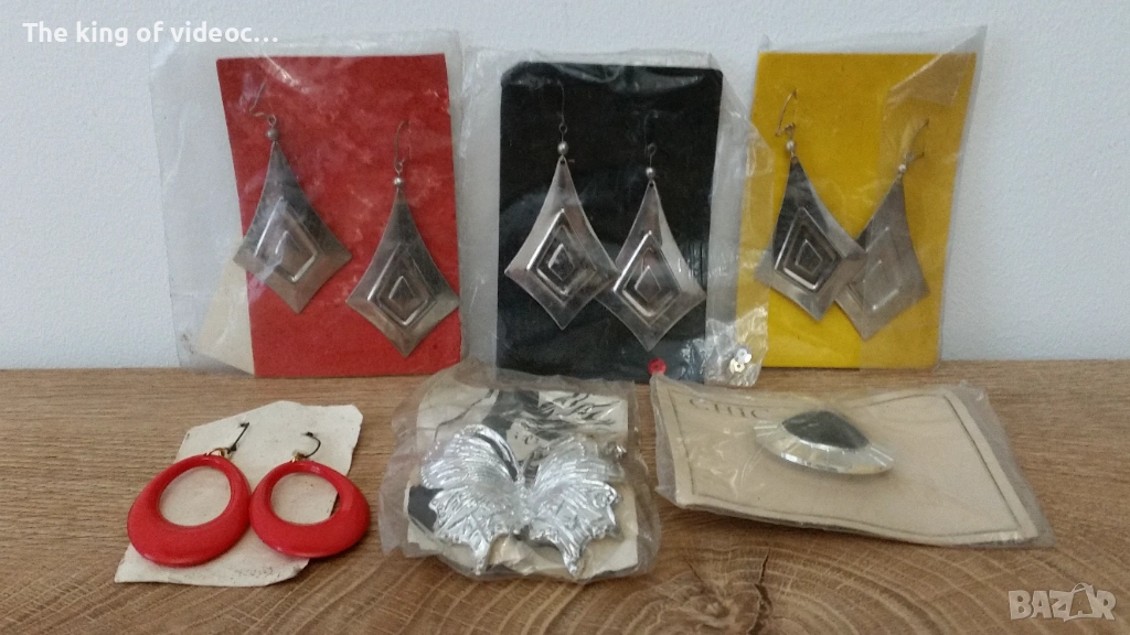 Продавам български бижута от 80-те години. 5 чифта обеци и две брошки . Червените обеци са от пластмаса , другите четири чифта обеци са от неръждаема стомана. Пеперудата и другата брошка са от пластмаса . Никога не са използвани, винаги са си били в пликчета. Останали са от магазин за бижута от 80-те години. Общо 7 ретро бижута . Продават се заедно. Изпращам с Еконт, Спиди или лично предаване . Цена 10 евро за всички заедно общо .