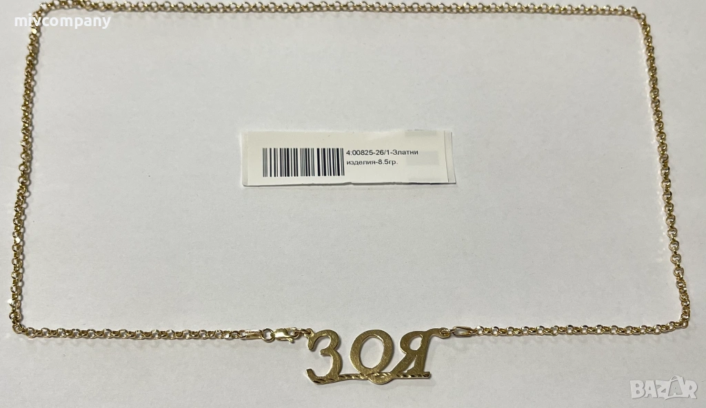Златно колие с име"Зоя" 8.50гр.62.5см.