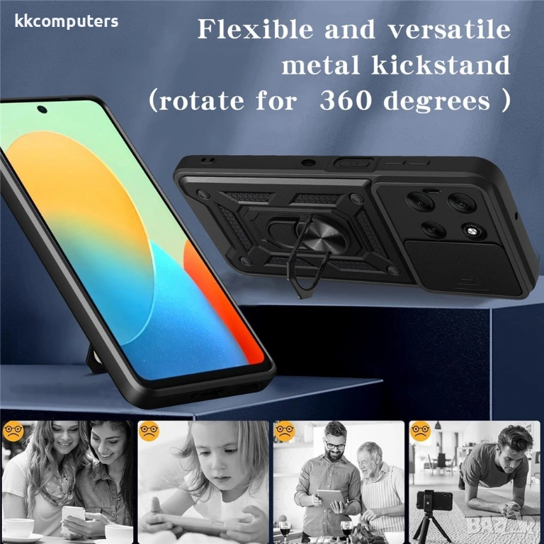 Потребители на Motorola Moto G56 5G, които търсят максимална защита с военен клас; хора, които често гледат видеа и имат нужда от универсална въртяща се стойка; всеки, който иска допълнителна защита за камерата с плъзгащо капаче; шофьори, използващи магнитни стойки за кола.