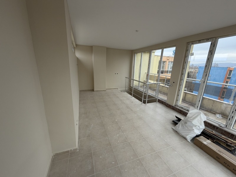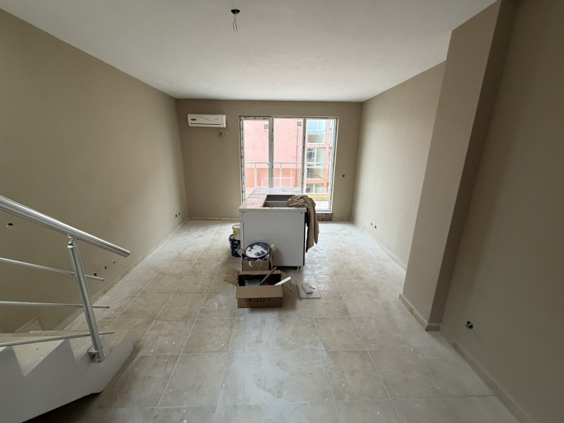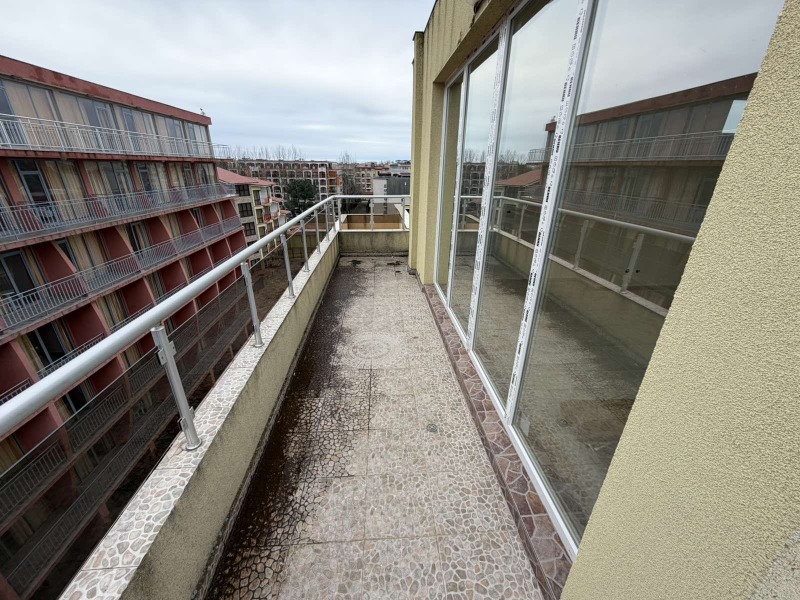 Предлага се за продажба просторен и елегантен тристаен мезонет, разположен на 4-ти и 5-ти етаж в жилищна сграда без такса поддръжка в Слънчев бряг, в един от най-удобните и предпочитани райони на курорта, само на 450 метра от морето и в непосредствена близост до цялата градска и курортна инфраструктура, включително популярните магазини Младост и Т-Маркет , ресторанти, кафенета, спирки на градския транспорт и зони за отдих, което прави имота еднакво привлекателен както за целогодишно обитаване, така и за сезонна почивка или инвестиция; разпределението на апартамента е прецизно проектирано и осигурява комфорт и функционалност, като на първото ниво са разположени светла и уютна спалня, просторна всекидневна с обособено място за кухненски бокс, баня с тоалетна и удобни коридори, създаващи усещане за простор и уют, а на второто ниво се намира голяма тераса, идеална за отдих на открито, както и самостоятелна спалня със собствена баня с тоалетна и излаз на тераса с великолепна панорамна гледка към планината, където може да се насладите на тишина, слънце и природни пейзажи, като съчетанието от отлично местоположение, близост до морето, липса на такса поддръжка и хармонично разпределение превръща този апартамент в рядко и наистина изгодно предложение на пазара на недвижими имоти в Слънчев бряг.