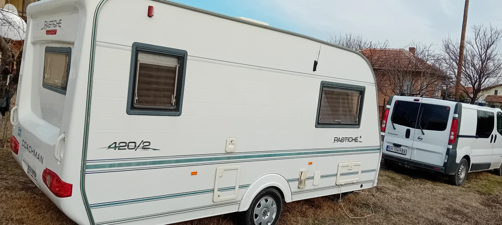 Уникално запазена каравана Cochman Pastiche 420-2 Год. на производство: 11. 05. 2005год. Безупречно състояние. Много запазен интериор и екстериор! Отлична за годините си! Караваната е закупена и регстрирана на 19. 09. 2024година. РАЗПОЛОЖЕНИЕ: В предната част са 2легла които се трансформират на спалня. В задната част е кухненски бокс/мивка и готварска печка с грил и фурна /на газ и гардероб за багаж. Санитарно помещение: - Мивка. - Душ с поддушово корито. - Химическа касетъчна тоалетна " THETFORD" . - Резервоар за чиста вода 60 литра с външно пълнене. - Бойлер Truma на газ и 220v - Завеса. КУХНЕНСКИ БОКС: - Хладилник на Газ/12V/220V - Мивка. - Печка на газ. - Шкафчета с органайзери за багаж. - Отваряем прозорец. ОТОПЛЕНИЕ: Печка " Truma" на газ и обдухване по цялата каравана и форселта ЕКСТРИ И АКСЕСОАРИ: - ФОРСЕЛТ(Летен). - Газ 12/220V. - Щори и комарници. - Комарник на вратата. - TVантена с усилвател. - Заводска пътечка за модела. - Манивела за стабилизатори. - Пети на стабилизаторите. - Стълбичка за входната врата. При интерес и допълнителни въпроси, не се колебайте и позвъните на посочения телефонен номер. TEL: 0896888040 ЛОКАЦИЯ: - Плевен.