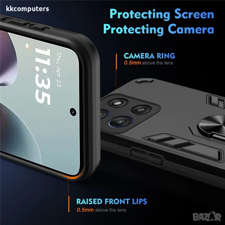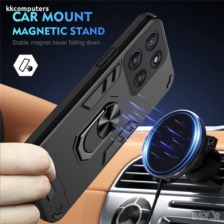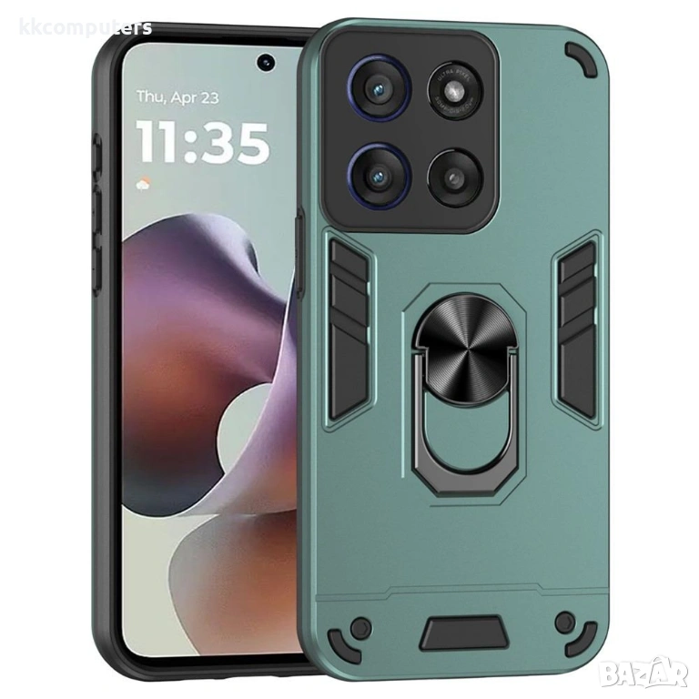Калъфът с въртящ се пръстен за Motorola Moto G56 5G съчетава надеждна защита с практична функционалност в елегантен дизайн. Изработен от здрав PC и гъвкав TPU материал, този калъф е създаден да издържа на ежедневни натоварвания, като същевременно осигурява отлична защита при падане. Въртящият се пръстен на гърба предлага пълна регулируемост за удобно гледане, а също така служи като стабилна опора за пръста ви за по-сигурен захват. 0.5 mm повдигнатите ръбове около екрана и камерата предпазват най-чувствителните зони от надраскване. Вграденият магнитен лист го прави съвместим с автомобилни стойки, а комплектът включва скрийн протектор за цялостна защита на екрана.