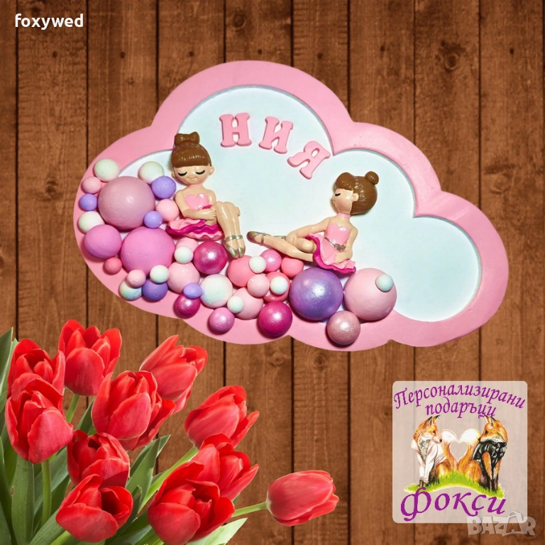 Персонализирано керамично детско пано нощна лампа Балерини → Обява 53510594