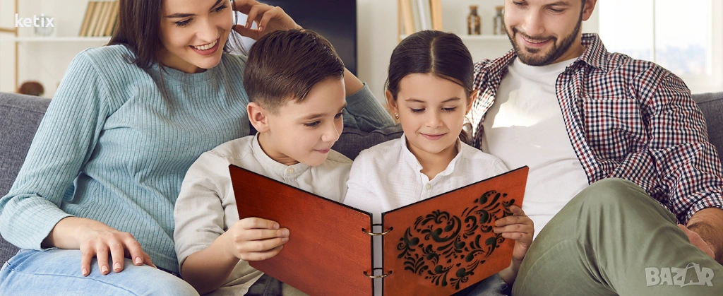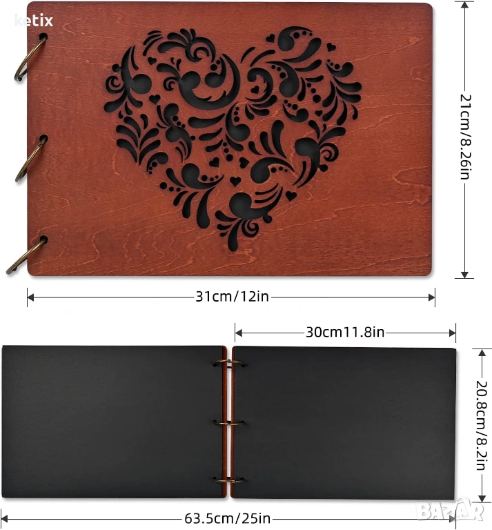 Романтичен дизайн с изрязано сърце – Елегантна дървена корица с лазерно гравиране и прозорец със сърце създава романтичен спомен за любовни истории и специални събития.