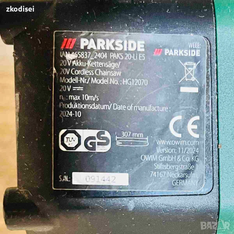 Верижен трион PARKSIDE PARKSIDE PAKS 20 Li E5 → Обява 53510780