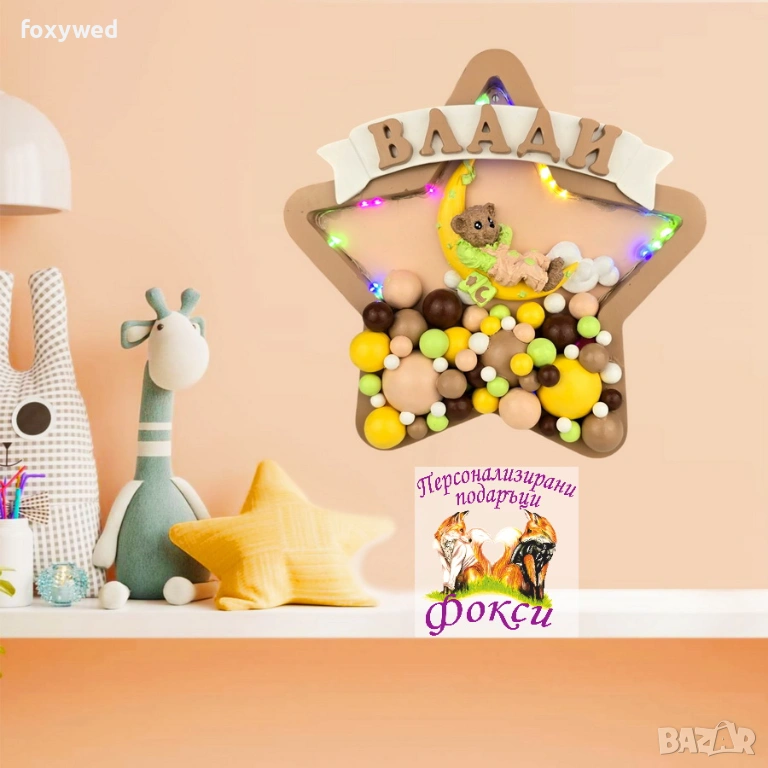 Персонализирано керамично пано нощна лампа Мече върху луна → Обява 53510805