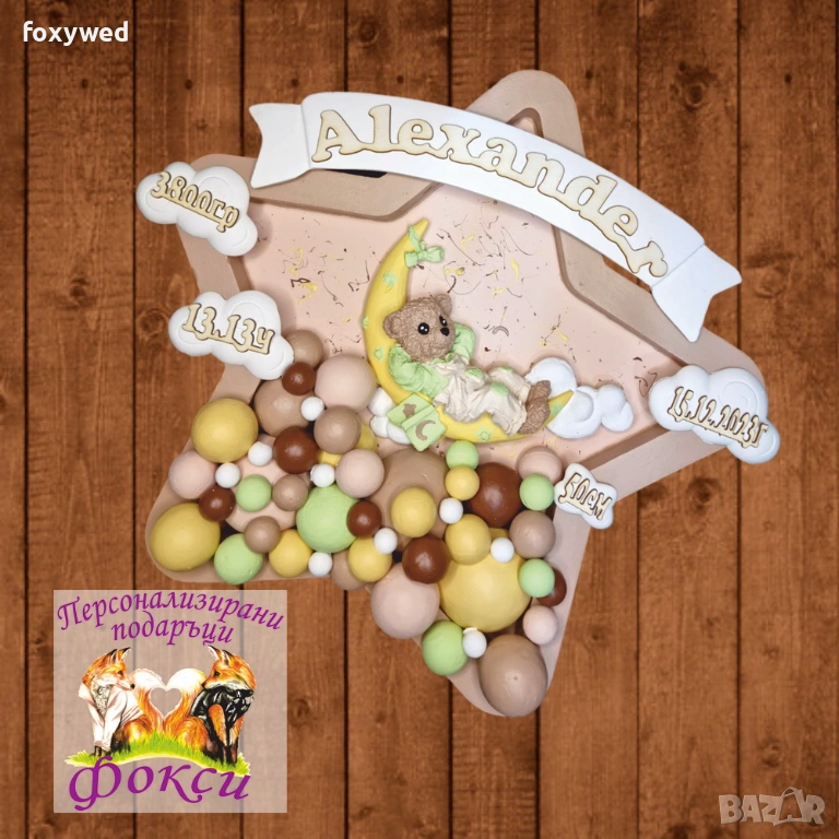 Персонализирано керамично пано нощна лампа. С възможност за изписване на рождените данни на детето – дата и час на раждане, тегло, ръст. Украсено с декоративни фигурки