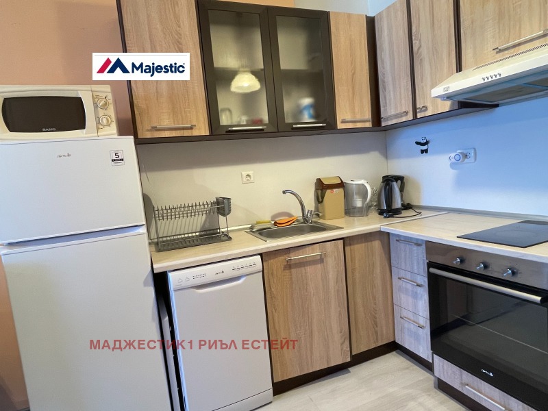 🛋️ Обзавеждане: вградени кухненски шкафове, фурна с керамичен плот, пералня, съдомиялна, хладилник, маса за хранене , диван,холна маса, секция, телевизор.