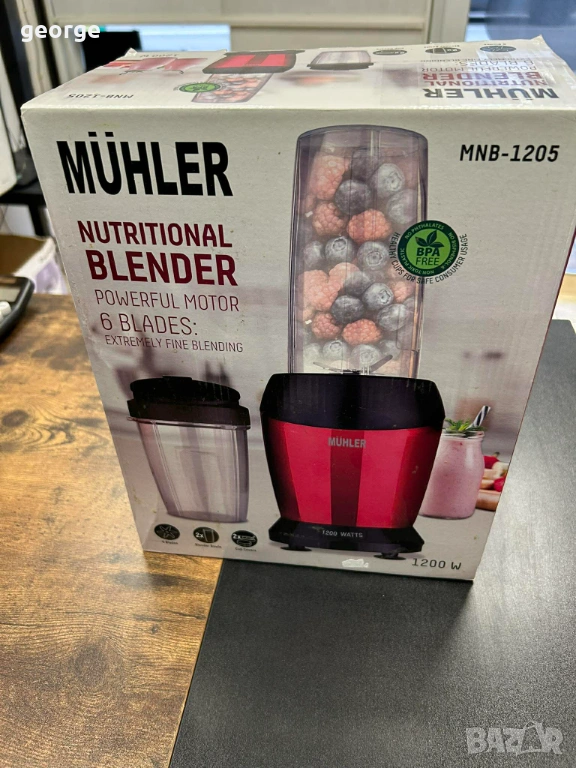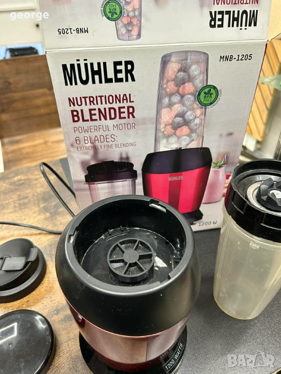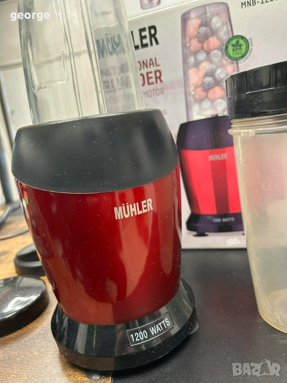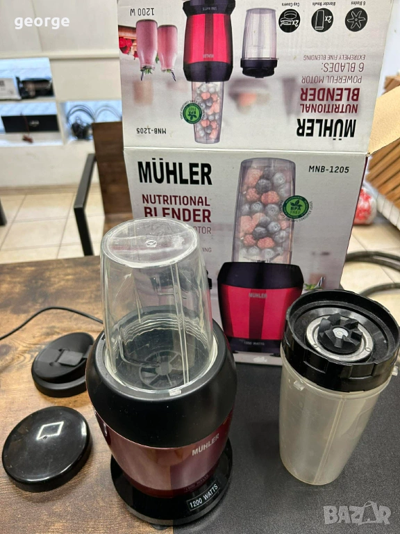 Нутри блендер Muhler MNB1205 1200W 6 ножа 1000мл и 800мл купа - червен