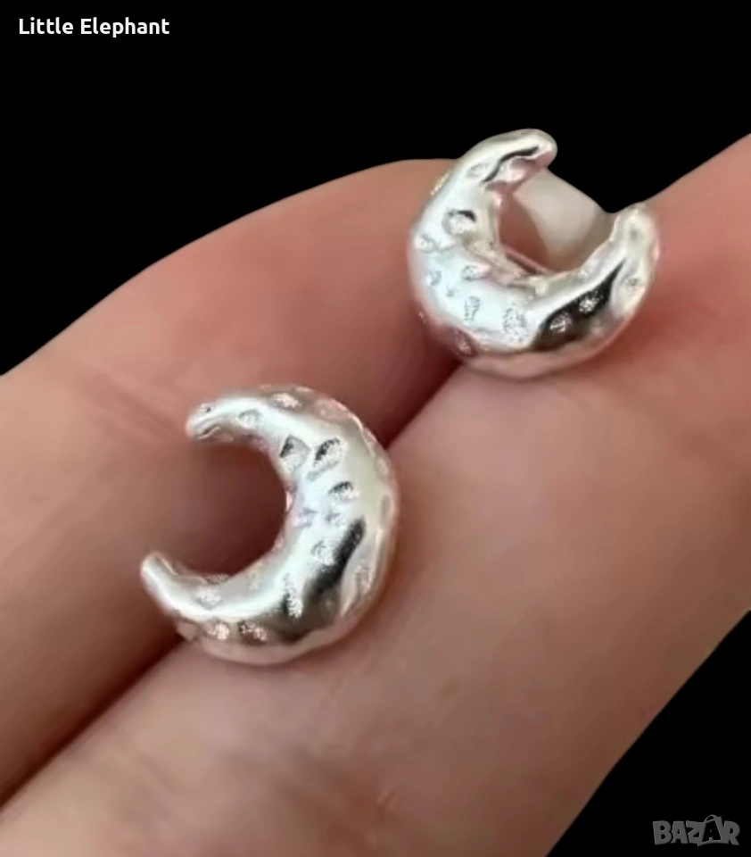 Pre order ✨ Сребристи обеци "Лунен полумесец" с органична текстура/нови → Обява 53510944