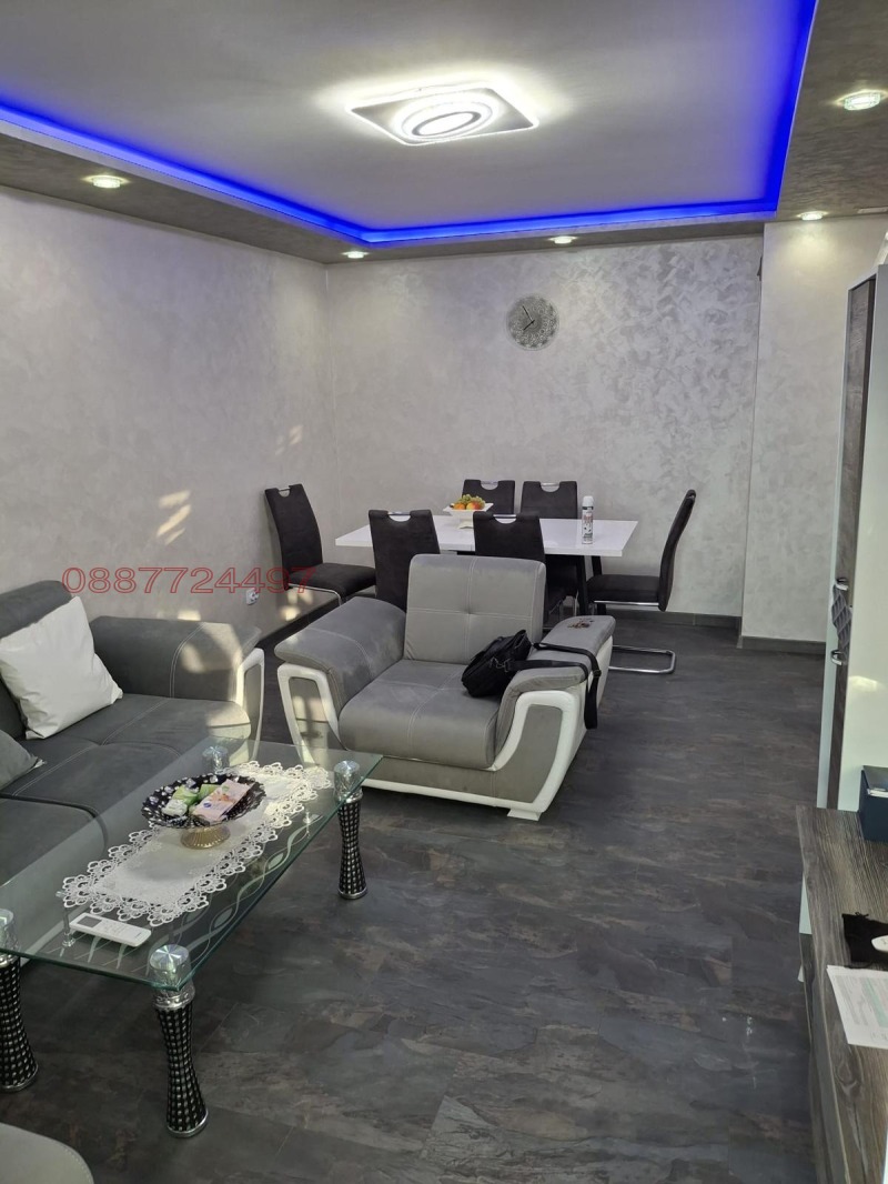 ?Мебели: Жилището се предлага с нови мебели и модерен хол с ефектно LED осветление.