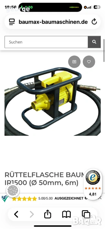 Иглен вибратор за бетон BAUMAX IR1500, 1.5 kW, до 50 мм → Обява 53511433