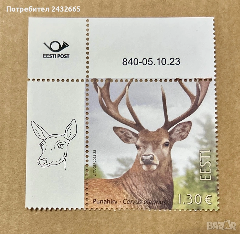 1906а. Естония 2023 - “ Фауна на Естония : Благороден елен. “, **, MNH :
