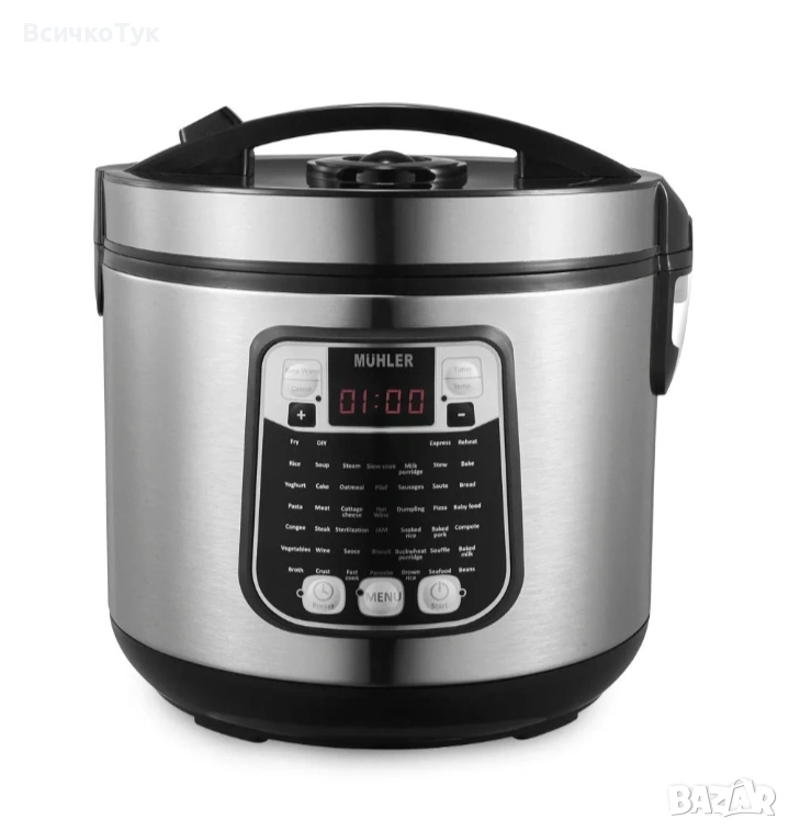 ✨Електрически мултикукър MUHLER MLC-5045, 5L, 45 програми за готвене, Сив