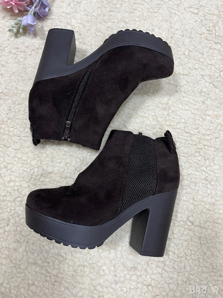Боти еко велур, цвят тъмен шоколад