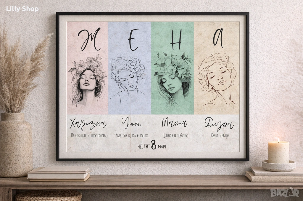 Жена, за осми март постери и персонализирани картички в рамка за баба и мама → Обява 53511680