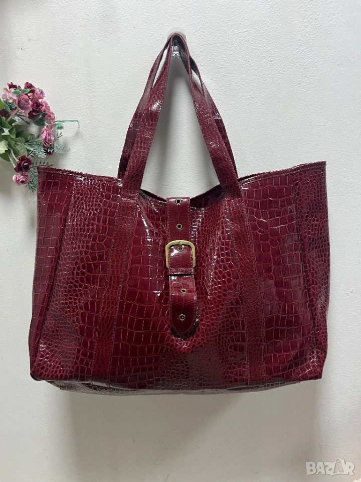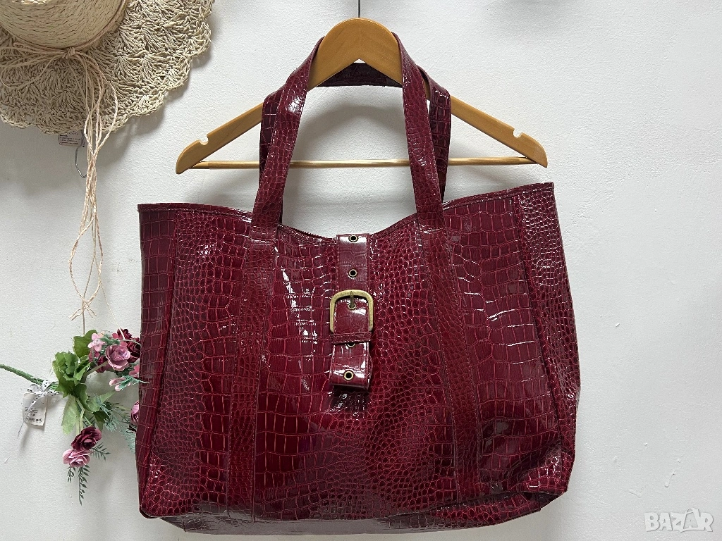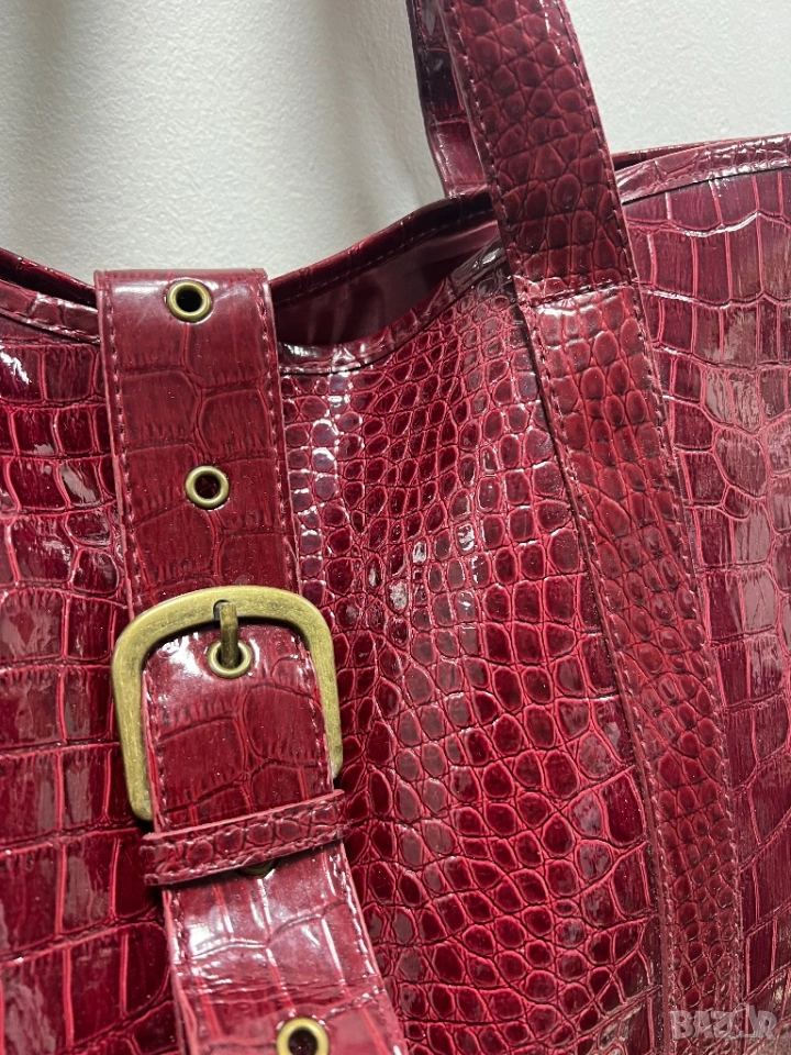 Голяма чанта лак, имитираща крокодилска кожа