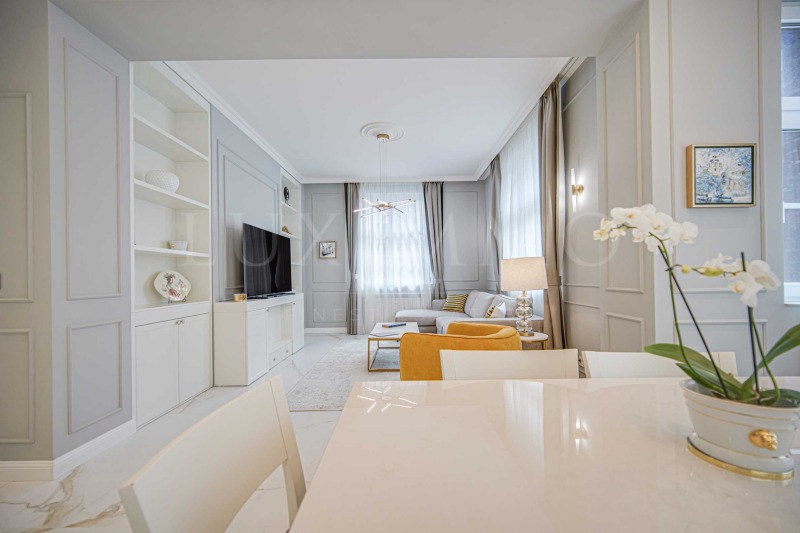 Luximmo finest estates представя на вашето внимание луксозен апартамент с две спални под наем в сърцето на София на метри от Народен театър Иван Вазов , галерии, ресторанти и всякакви други удобства на динамичния градски живот.