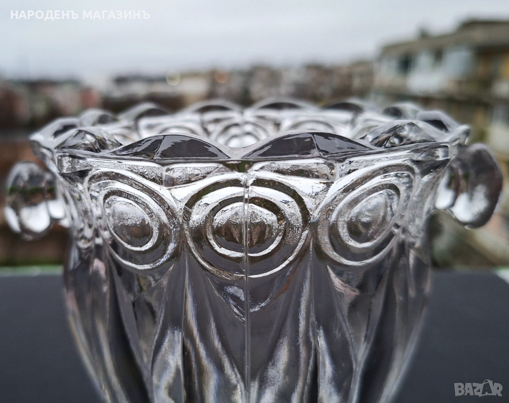 Тежка и масивна, релефни орнаменти по цялата обиколка.