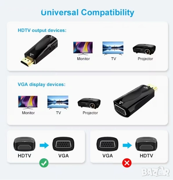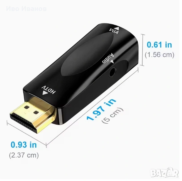 1080P HDTV мъжки към VGA женски конвертор с аудио, съвместим с монитор, лаптоп,