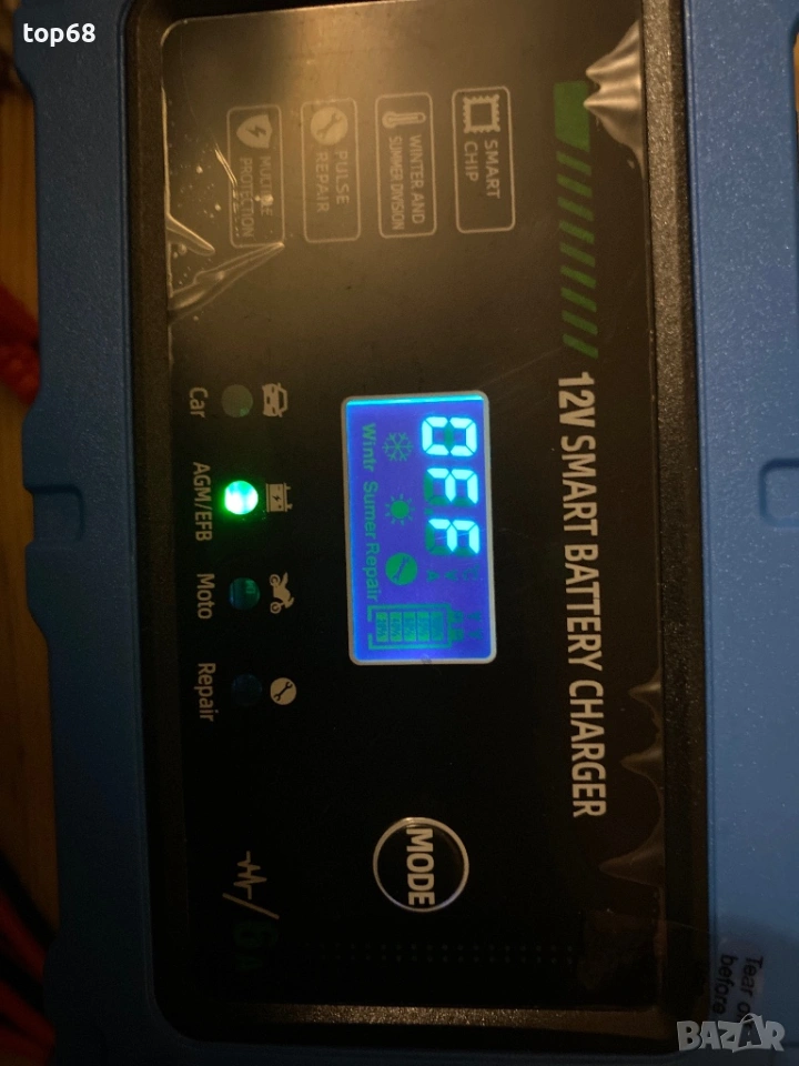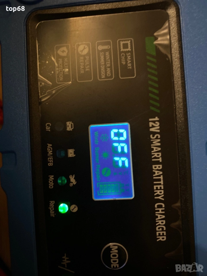 Токоизправител (зарядно) за акумулаторни батерии,Смарт, Дигитален, Функция за регенериране, 6A, 12V, Автоматично, LCD тъчскрийн, 4 режима на автоматичен ремонт, За оловно-киселинни батерии за камиони, Мотоциклети, Лодки, Син