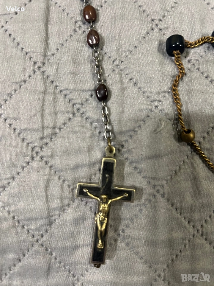 католически гердан с кръст единия се отваря и има мощи и броеница от камъчета не са от пластмаса цената е за броила