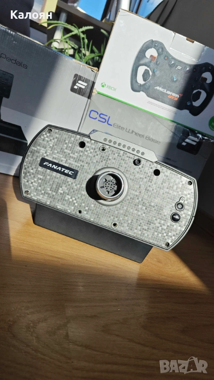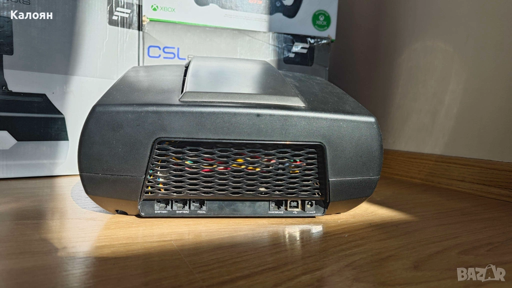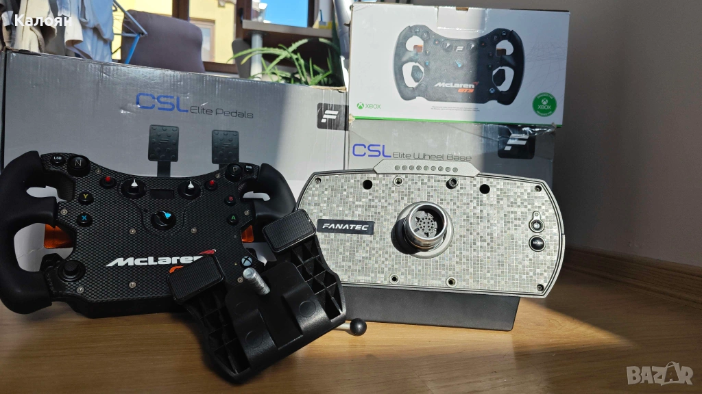 Базата и воланът са в пълна изправност. Моделът е стар, но това не му пречи да се представя на ниво дори и в нови заглавия като Le Mans Ultimate или Assetto Corsa Evo. Честно казано дори останах изненадан от усещането, което придава, въпреки минимално отделено време за настройка на force feedback-a. Технически базата има около 6 Nm пиков въртящ момент, който се предоставя посредством ремък. Може да се захване и към бюро с включената в комплекта скоба. Пробвал съм различни бази и смятам, че това е достатъчно, особено за човек, който се чуди дали това хоби е подходящо за него. Педалите са старата версия CSL Elite без допълнения (2 педала, няма loadcell). Също в изправност, но не ги ползвам, защото имам монтирани T-LCM на Thrustmaster. В комплекта са включени оригиналните кутии, упътвания, стикери, инструменти и кабели. Единственото нужно е пространство, където да разположите всичко. Техниката продължава да се ползва през уикендите за по няколко часа главно в LMU, няма проблеми с прегряване, прекъсвания, отслабване на мотора или други индикатори за неизправност. Спокойно може да задавате въпроси, ако възникнат такива. Изпращам по Еконт или Спиди за цялата страна с преглед и тест. За Варна е възможно и лично предаване.