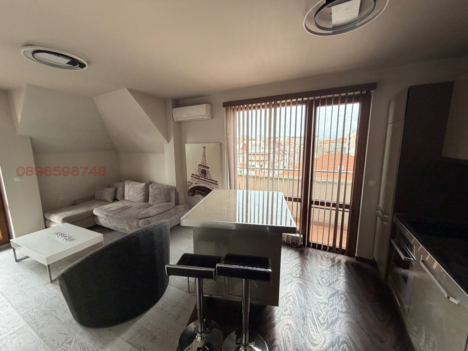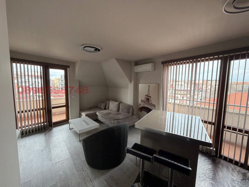 Предлагаме под наем елегантен тристаен апартамент с модерно обзавеждане, просторни помещения и отлична функционалност. Жилището е много светло, разположено на висок етаж, с тераси и приятна градска панорама.