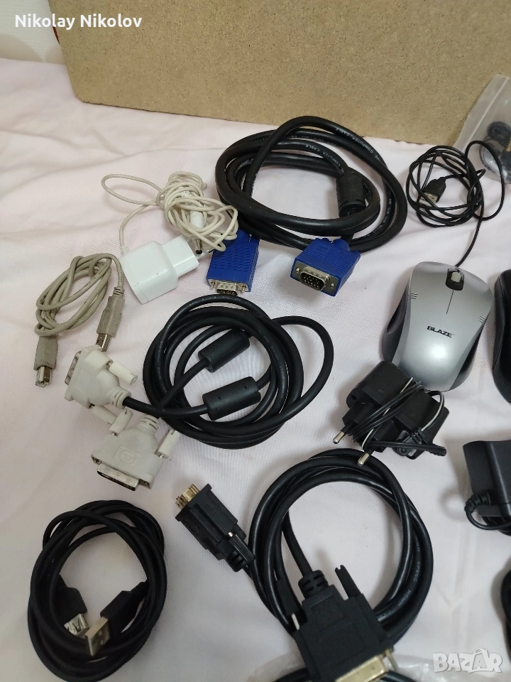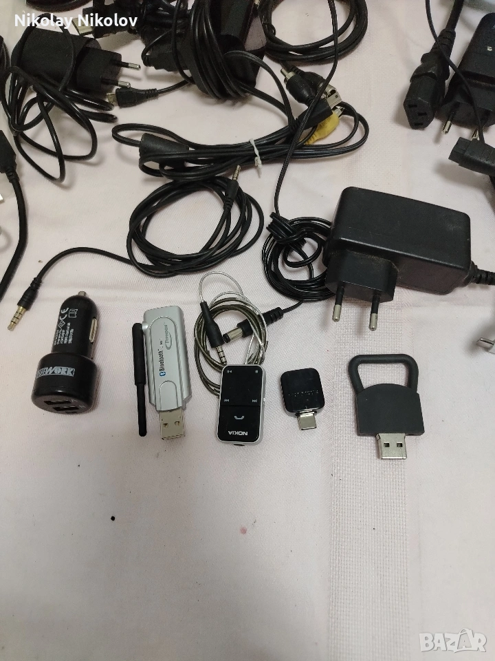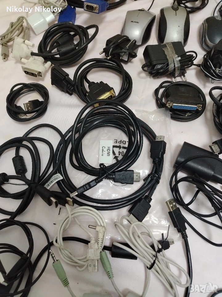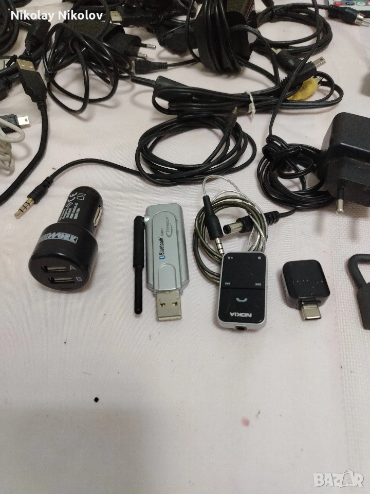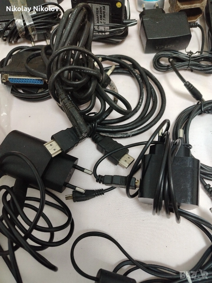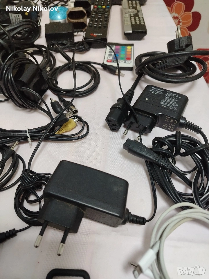 58 броя зарядни,адаптери,HD кабели чисто нови около 5 броя приемник, дистанционно управление 3бр флашки, мишки и други неща всичко работи
