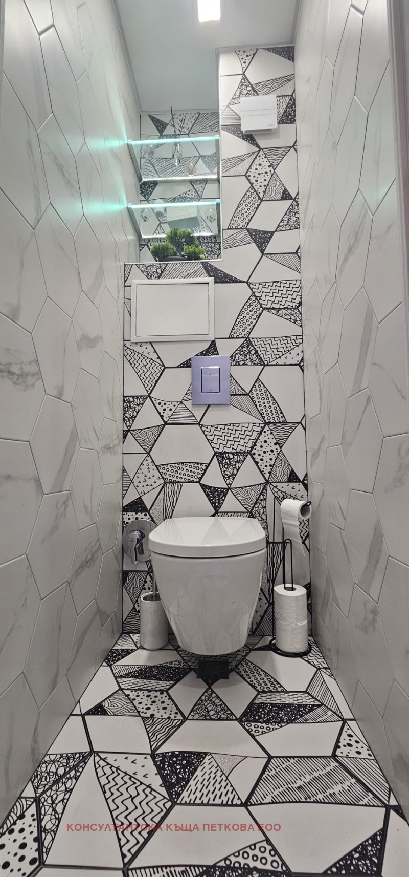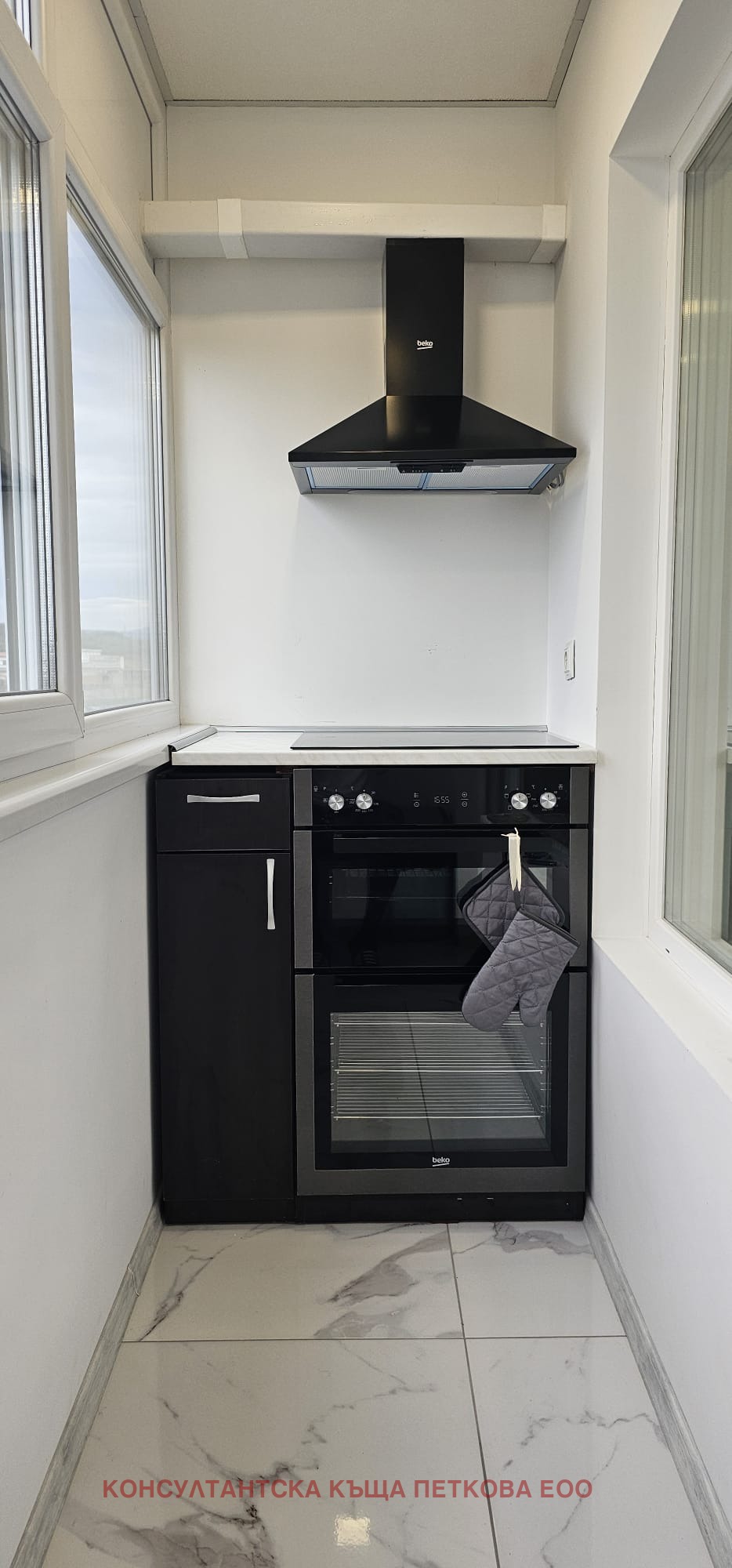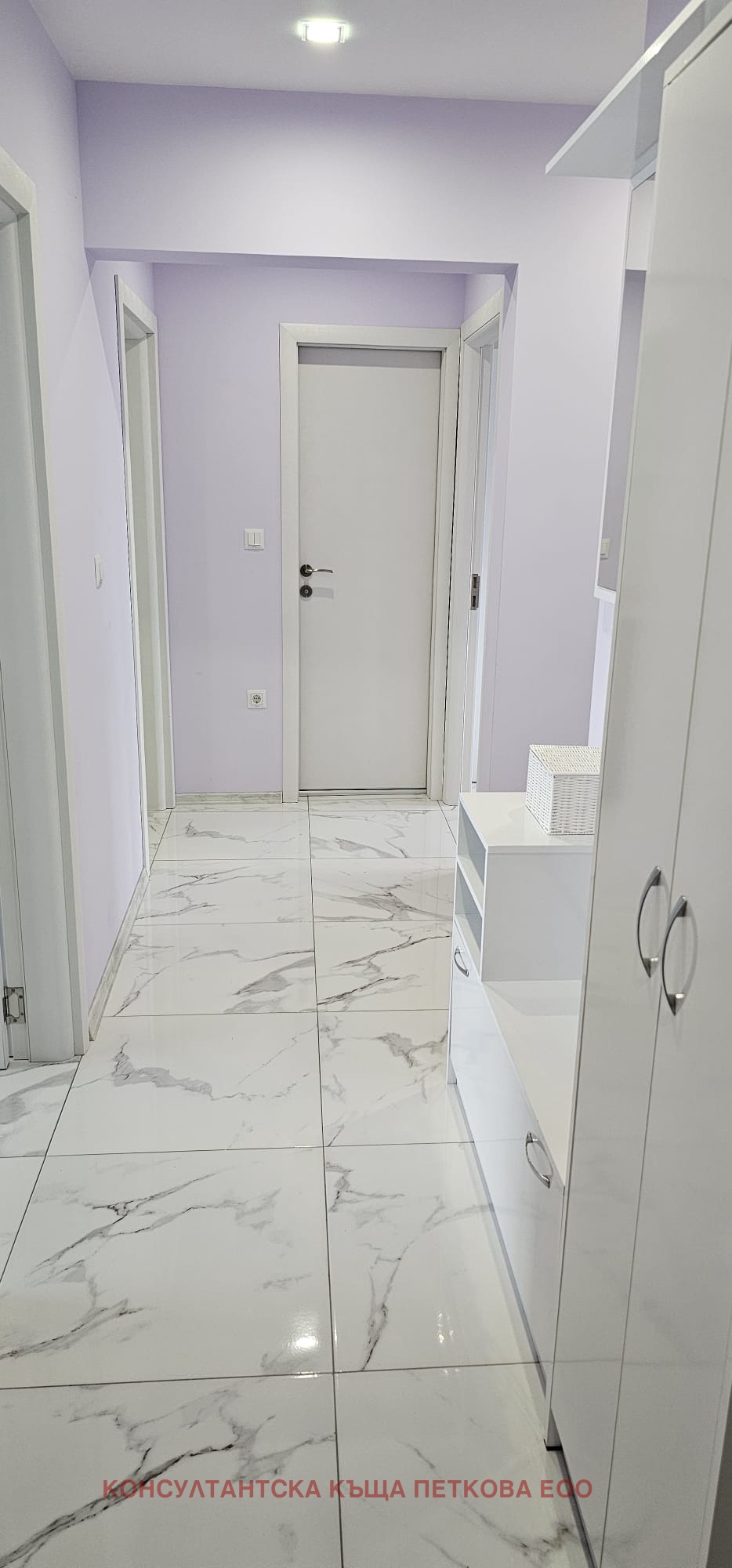Стъпваш върху гранитогрес с мраморен ефект, който минава абсолютно навсякъде в апартамента хол, кухня, коридор, спални. Единна настилка, без компромиси, без преходи, без кръпки .