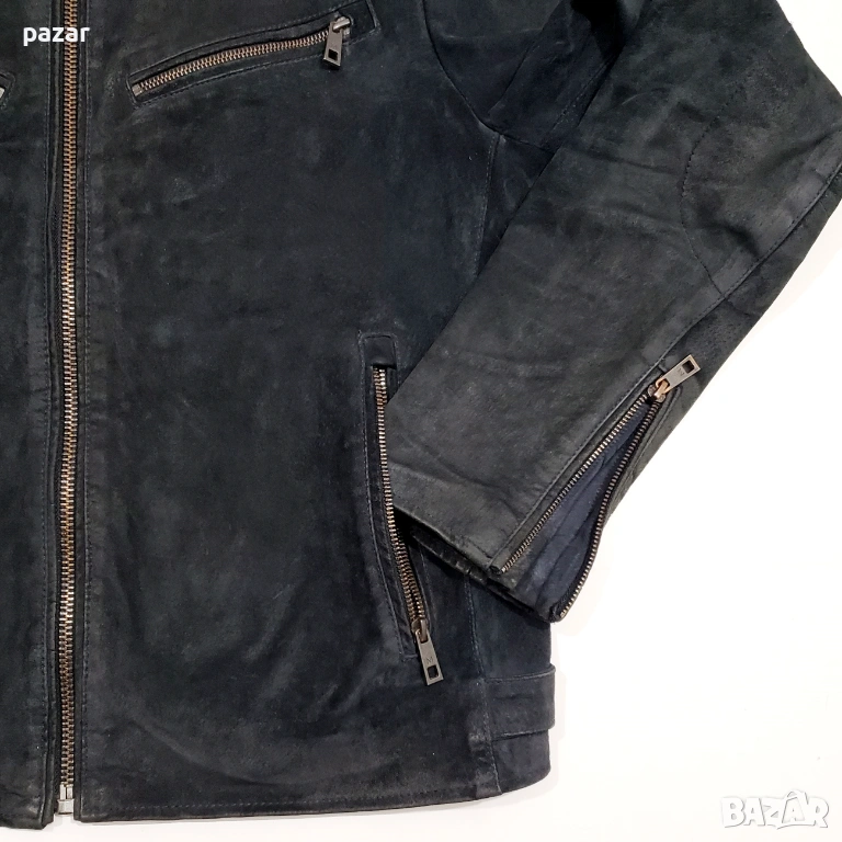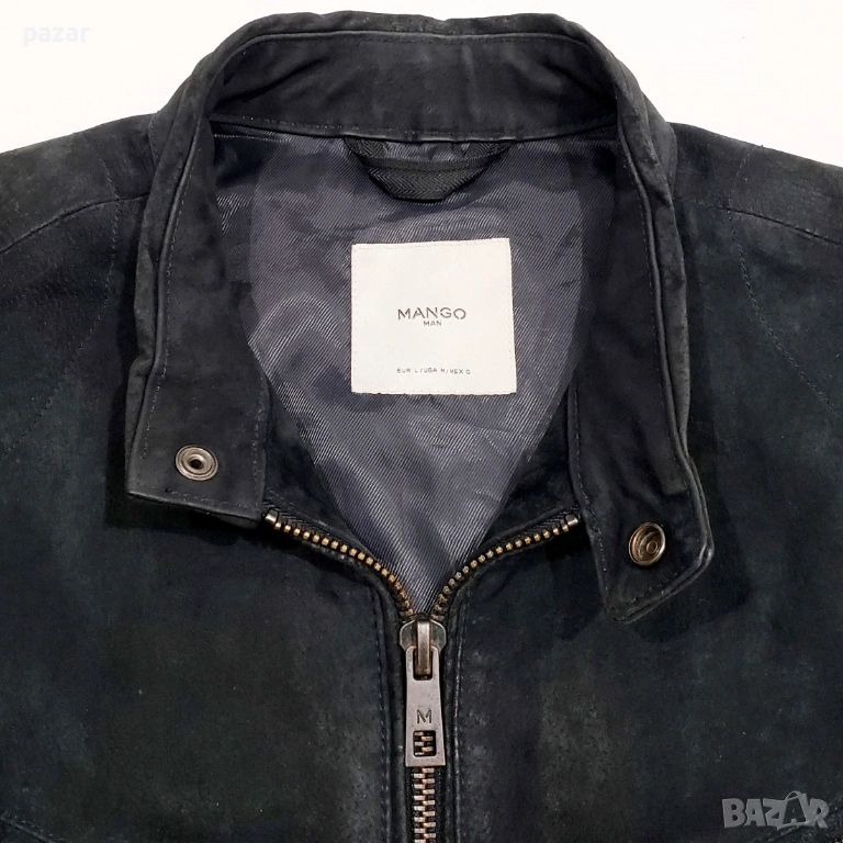 Mango Мъжко Кожено Яке Велур Естествена Кожа Тъмно Синьо L-XL → Обява 53513778