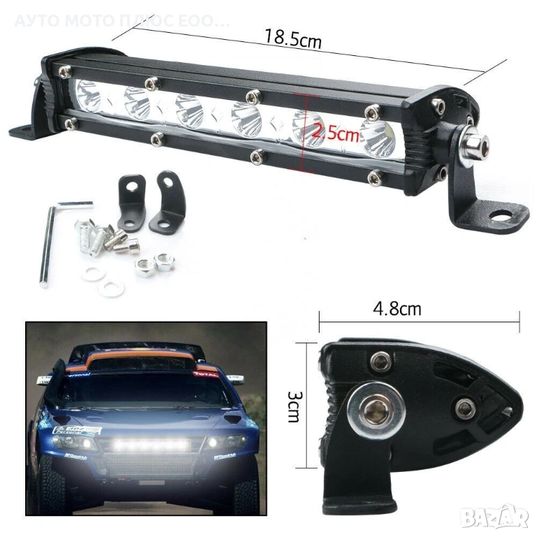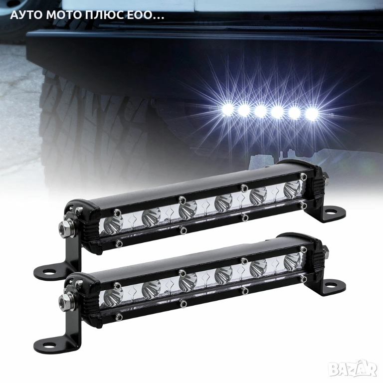 2 броя мини LED бар (диоден халоген) с мощност 18W, оборудван с 6 висококачествени светодиода.