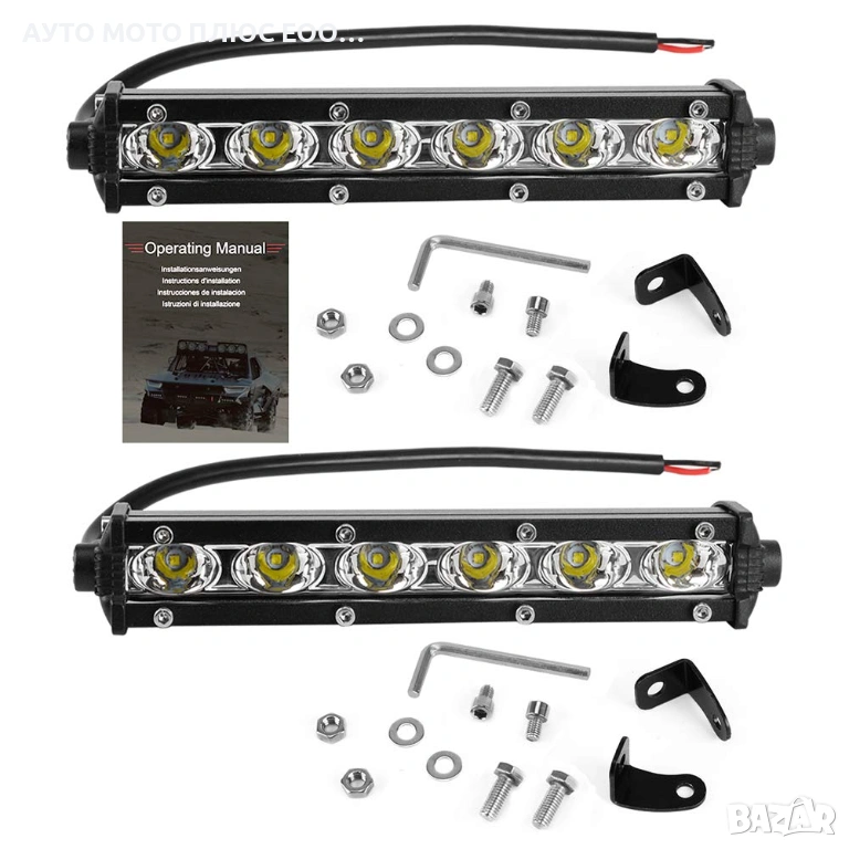 2 броя Мини 18W LED бар за осветление с 6 диода - 12/24V