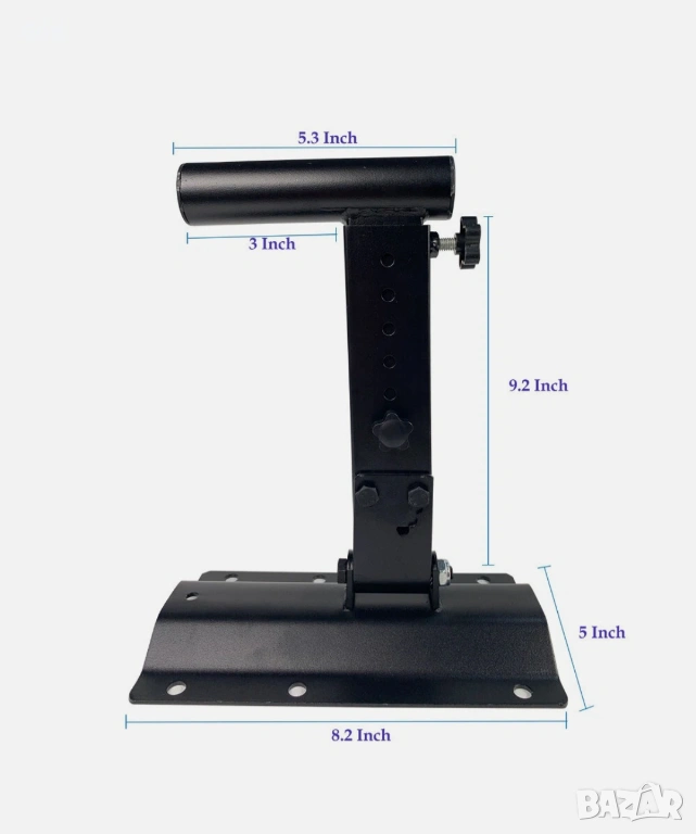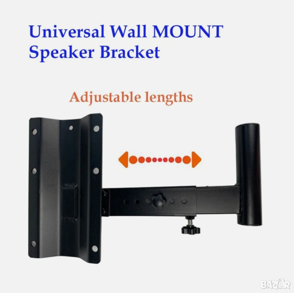 Универсална скоба за тежък монтаж, подходяща за големи до малки високоговорители директно върху стени - Монтира се постоянно и сигурно - Стандартна вложка 1 3/8" е подходяща за повечето шкафове за високоговорители - Изработена от масивна формована стомана за структурна цялост - Разстоянието от стената се простира до 12,5" - Регулиране на ъгъла на наклон: 90 градуса - 30 градуса - Регулиране на ъгъла на завъртане: ±30 градуса - Товароносимост: 85 фунта (35 кг) - Добавен щифт от масивна стомана служи като предпазител. Издръжлива, здрава и надеждна - Безопасно окачва високоговорителите на равна стена.