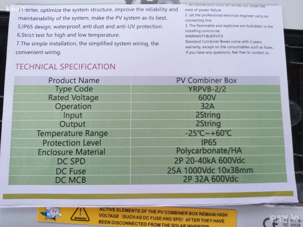 вашата инвестиция в оборудване. Подходящо за инвертори с два стринга. Продуктът е