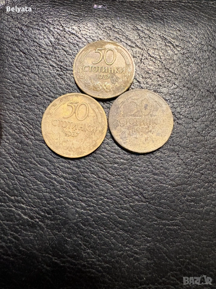 Продавам 3 монети “ 50 стотинки “ от 1937. Супер качество , от редките с обърнатия ГЕРБ