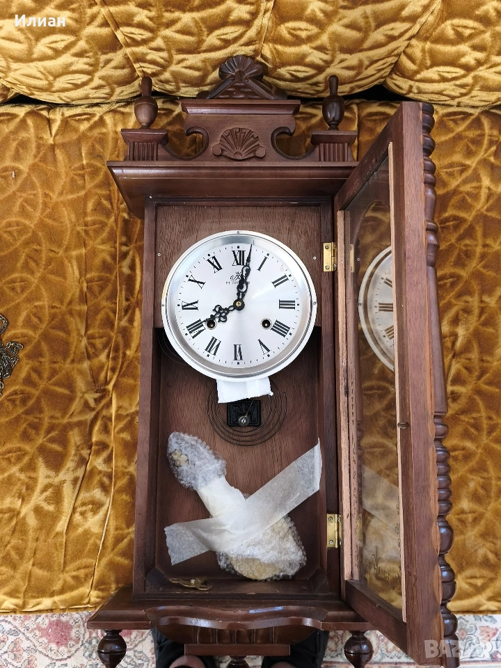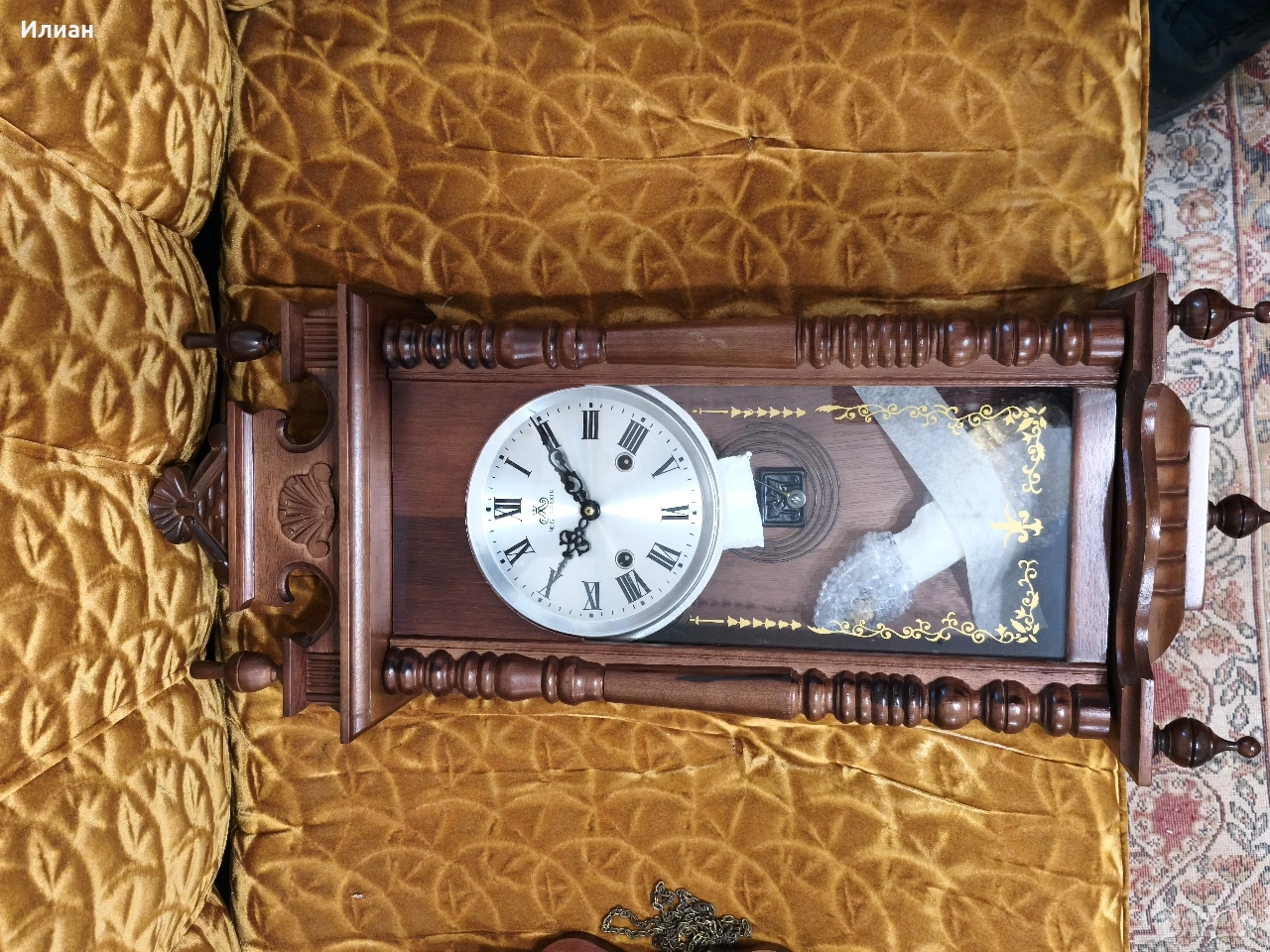 Продавам механичен стенен часовник с навиване чрез ключ – изработен в духа на класическите европейски модели от края на XIX и началото на XX век. Корпусът е от масивно дърво с прецизно оформени колони и декоративни елементи, които подчертават симетрията и благородството на линиите. Циферблатът с римски цифри и фино изработени стрелки допълва усещането за традиция и завършеност. Механизмът е с ключ и махало – онази жива, дишаща механика, която придава характер и присъствие. Това не е аксесоар, а централна точка в интериора – предмет, който създава атмосфера. Подходящ за: • Колекционери на механични часовници • Интериори в класически или ретро стил • Кабинет, библиотека, представителен хол • Хора с изразен усет към детайла и традиционната изработка Рамери: дължина 69см Ширина 28см