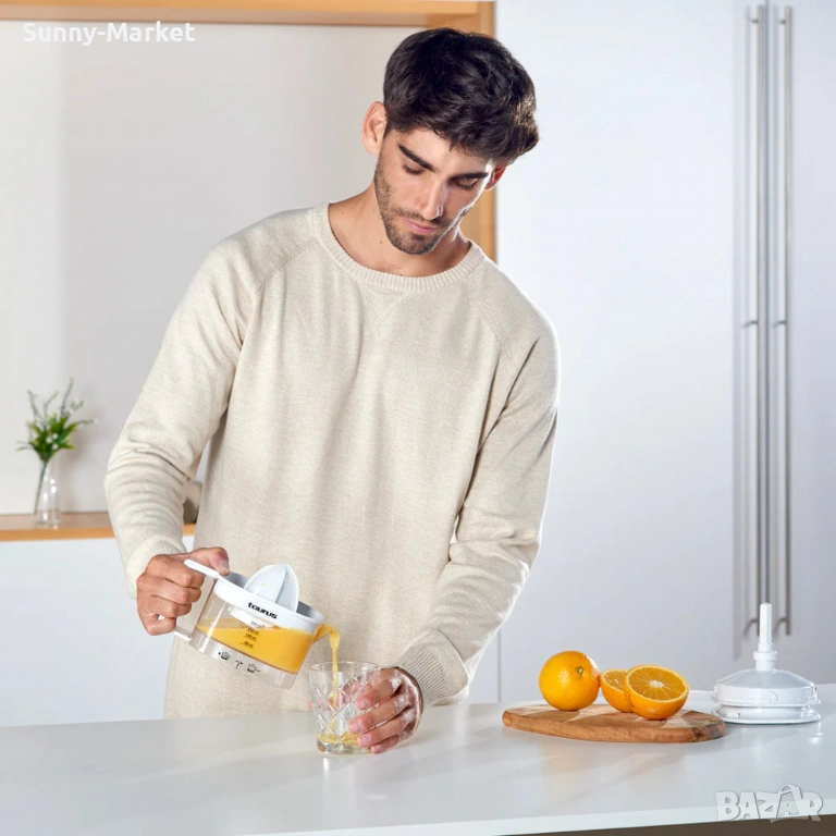 Компактната сокоизстисквачка с мощност 25 W и мерителна кана от 0,35 л е идеална за бързо и лесно приготвяне на пресни сокове. Регулаторът за пулпа и двойното въртене осигуряват ефикасно и персонализирано извличане. Разглобяемият дизайн и частите, подходящи за съдомиялна машина, я правят лесна за почистване. Включва държач за кабел и компактен дизайн, идеален за пестене на място в кухнята. Перфектна за наслаждаване на здравословни сокове всеки ден.