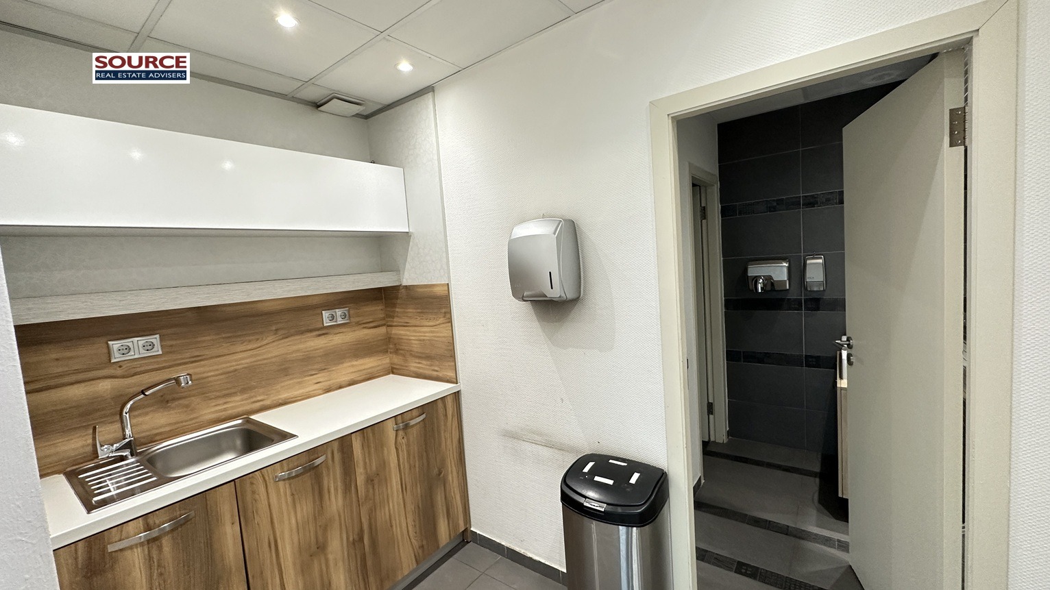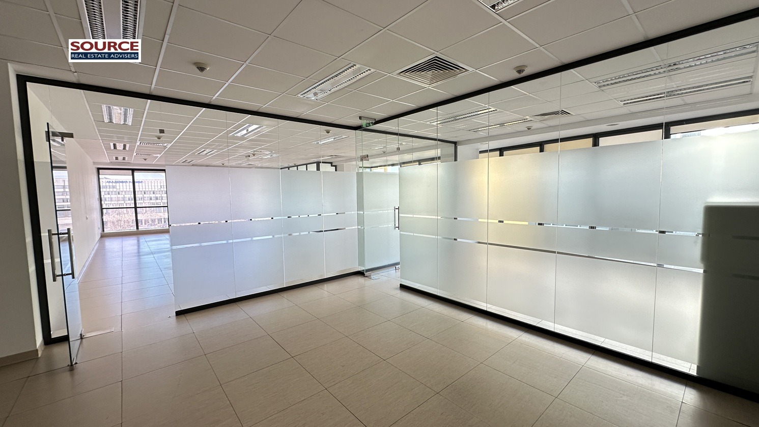 2. Разпределение: 1 голямо Open space помещение, 2 отделни работни помещения преградени със стъклени преградни стени, рецепция, оборудвана кухня, 2 wc. Офисът може да бъде изцяло с Open space разпределение или допълнително преграден според изискванията на Наемателя.