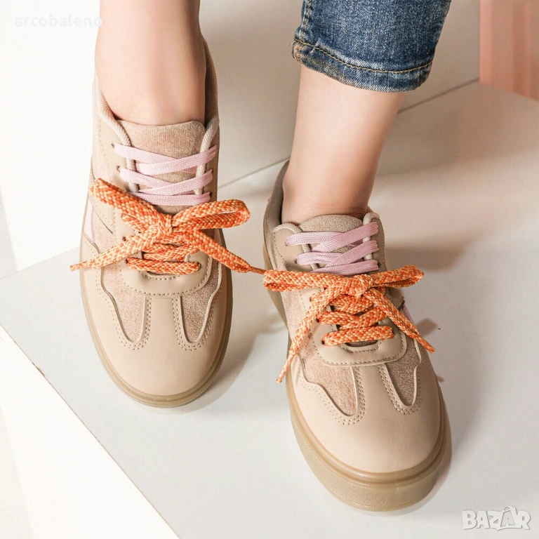 Открийте перфектния спътник за ежедневните си обувки с тази стилна маратонка, която не само впечатлява с модерния си дизайн, но и предлага изключителен комфорт. Изработена от висококачествени материали, тази обувка съчетава непринудена елегантност с практични детайли. Гладката горна част се допълва от текстилни вложки, които осигуряват дишане и комфортно усещане. Независимо дали се разхождате по градските улици, наслаждавате се на свободното си време в парка или просто се занимавате с ежедневието си с комфорт, тази маратонка е идеалният избор за жени, които ценят стила и комфорта. Обувката е универсална и е идеална за пролетни и летни дни. Допълнителни детайли, като здравите подметки, осигуряват не само стабилност, но и отлично сцепление, гарантирайки, че сте в безопасност и сте стилни на краката си. Тази маратонка е предназначена за жени, които следят модата и търсят удобни, но и атрактивни обувки. Висококачествената система за връзване осигурява персонализирано прилягане и приятен климат за краката. Поглезете се с тази модерна обувка и направете модно изявление с всяка стъпка.