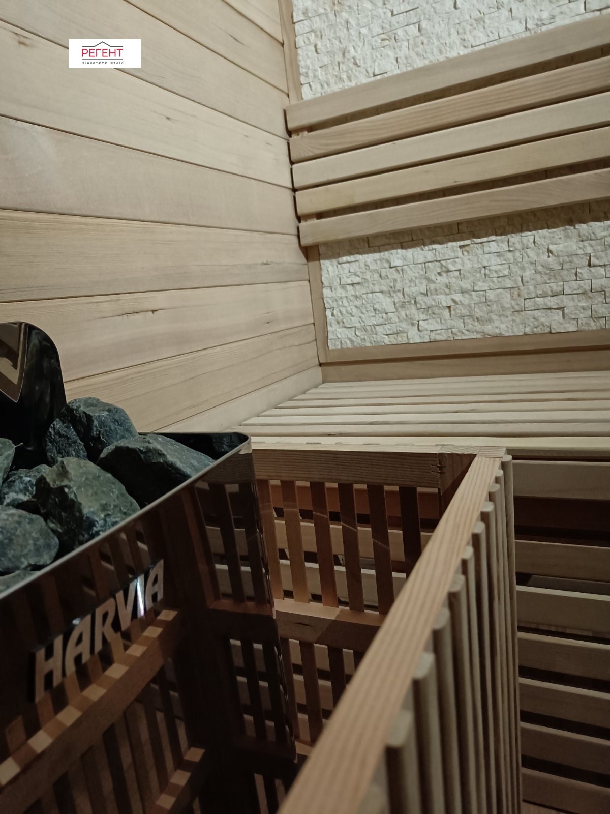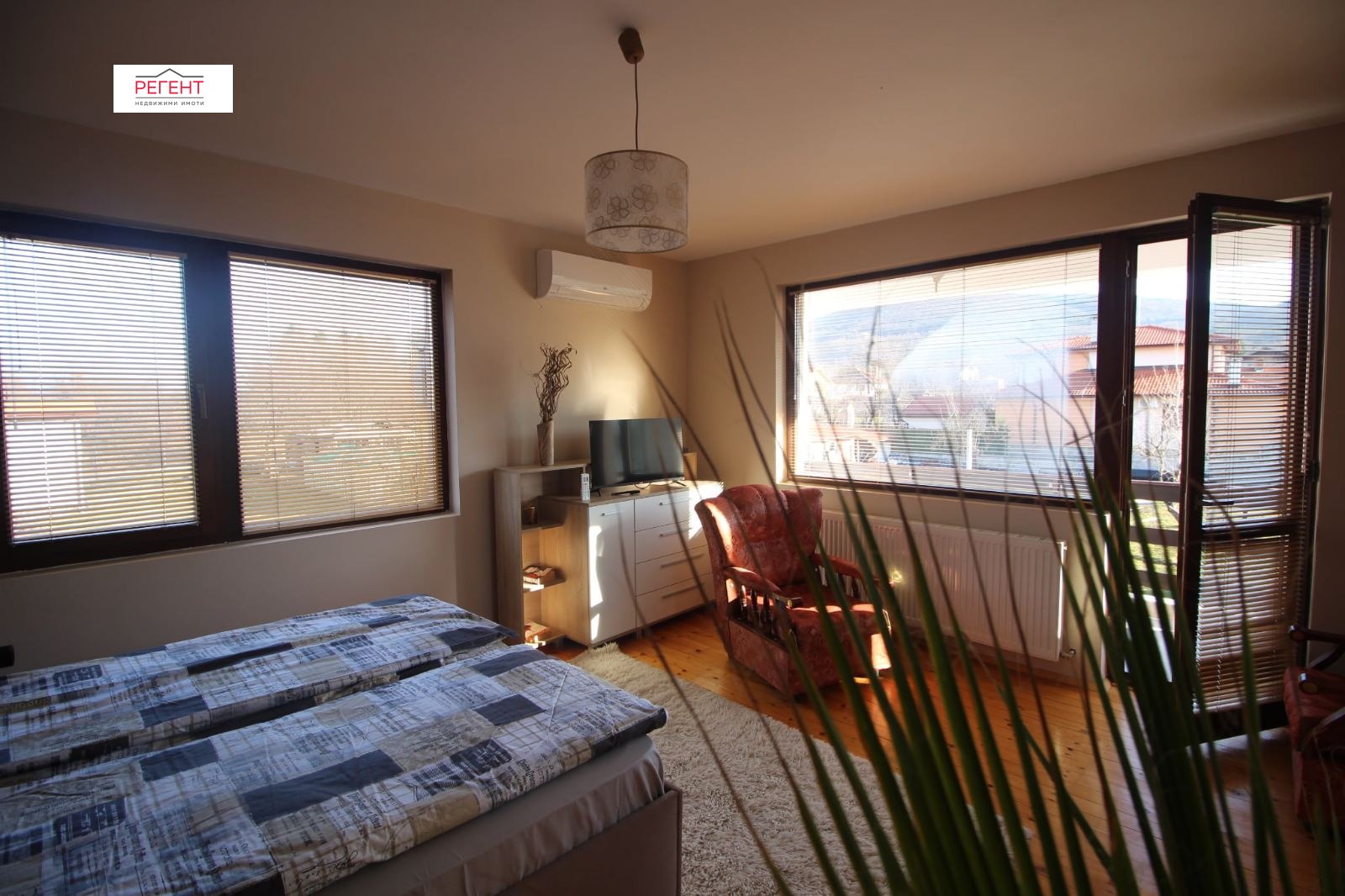 Разположена в тиха и зелена среда, къщата която отдаваме под наем е идеална за бягство от градския шум, а същевременно е в удобна близост до града и всички негови удобства. Имотът разполага с просторна дневна зона и добре оборудвана кухня, от която се излиза на открита веранда, три светли спални, всяка от които с достъп до тераса и два санитарни възела. За пълноценен релакс този имот предлага също така собствен сауна, джакузи и барбекю зона. На разположение е и навес за два автомобила. Отоплението е посредством локално парно и климатици. При наемане се изисква депозит!