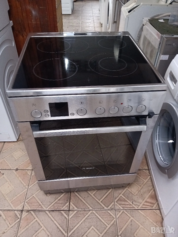 Иноксова свободно стояща печка с керамичен плот Бош Bosch Made in Germany 2 години Гаранция! → Обява 53516612