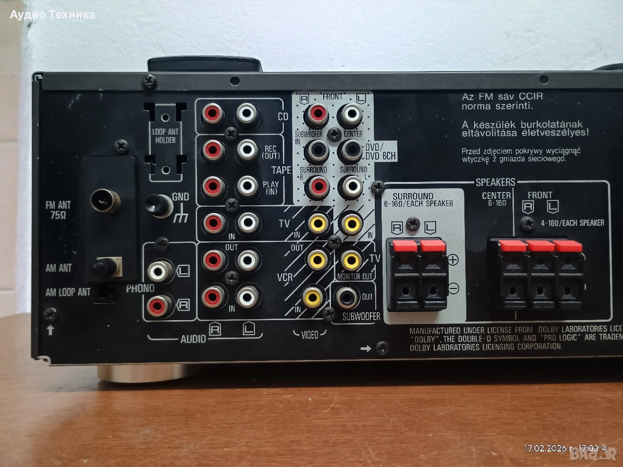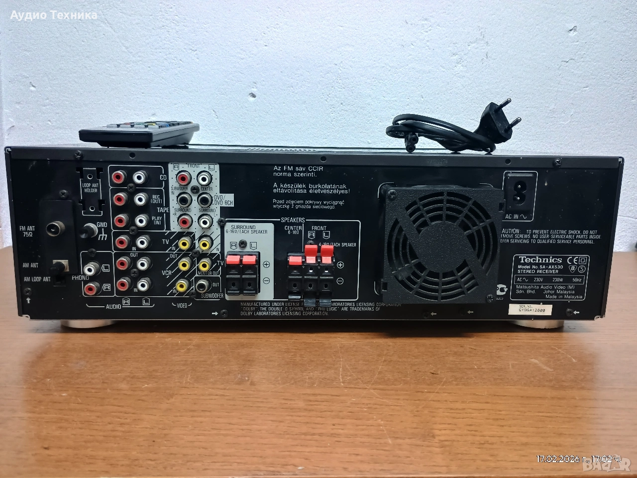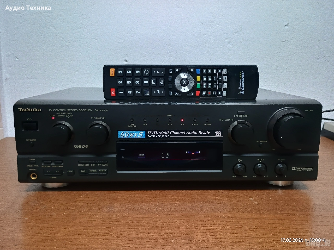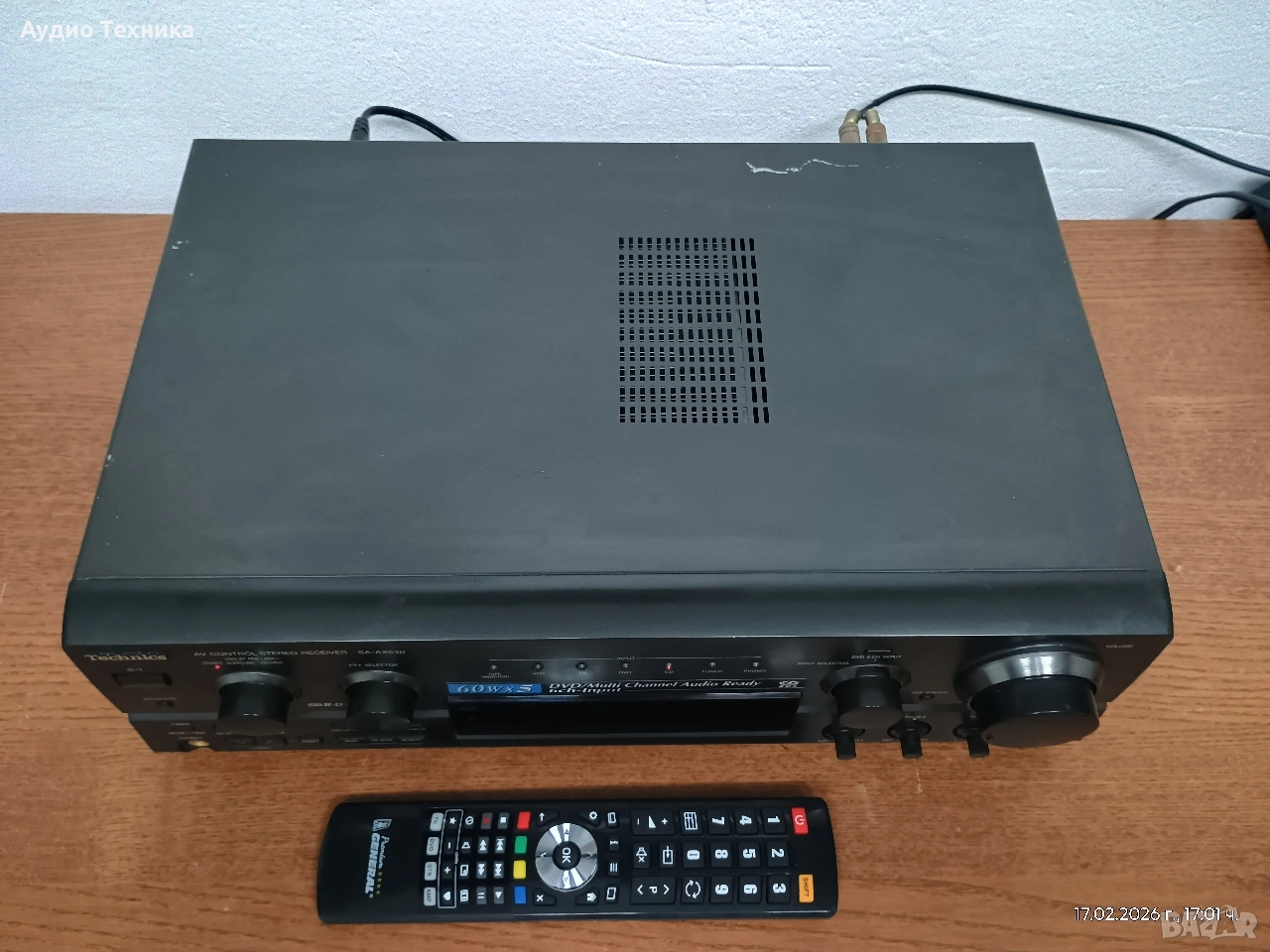 Ресивър (усилвател) Technics SA-AX 530 със страхотен качествен звук и активно охлаждане. Цената е в ЕВРО! Ресивърът работи перфектно с изключение на десния съраунд канал (има шум, но няма звук) с което съм съобразил и цената!!! Чисто ново дистанционно управляващо НЕ всички функции, но вършещо основната си работа. Ресивърът свири уникално с страхотно представяне във всички диапазони, от високите до най-ниските честоти, което го прави перфектен избор най-вече за стерео. Заповядайте и ще ви уверя!!! 🔊 Основни технически спецификации Изходна мощност (стерео): 80 вата на канал при 8Ω (от 40Hz до 20kHz, 0.8% THD). Изходна мощност (съраунд): 80W (преден), 80W (централен), 80W (заден). Честотен обхват: 10Hz до 70kHz. Общо хармонично изкривяване: 0.8%. Входна чувствителност: 3mV (MM Phono), 200mV (линеен). Съотношение сигнал/шум: 78dB (MM), 83dB (линеен). Импеданс на високоговорителите: Минимум 4-16Ω. Размери: 430 x 136 x 320.6 мм. Тегло: 8.5 кг. Характеристики и свързаност Съраунд режими: Поддържа Dolby Pro Logic, Dolby 3 Stereo и различни SFC (Sound Field Control) режими (Theater, Club, Live, Simulated Surround). Входове: Включва входове за Phono (MM), CD, Tape, DVD, VCR и TV. 6-канален директен вход: Позволява свързване на външен декодер за други съраунд формати като DTS или Dolby Digital. Видео връзки: Композитни видео входове и изходи. Изход за субуфер: Предварителен изход за активен субуфер за разширена басова репродукция. Тунер: Вграден AM/FM тунер с възможност за запаметяване на станции. Ресивърът е известен със своето трайно качество на изработка и е ценен както за домашно кино, така и за висококачествено стерео слушане. Въпреки стикерът 5x60W, абсолютно навсякъде информацията е, че осигурява по 80W на канал при 8ома. 🤷 Оценката ми е, че наистина си има доста добра "тяга". Предлагам и други усилватели, тонколони и друга техника. Всичко може да се види и тества в гр. Враца. Изпращам с опция преглед и тест. Доставям и лично до определено разстояние. 🔊🔊Музиката е живот! 🔊🔊