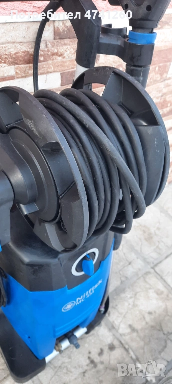 Професионална Водоструйка Нифиск във отлично оригинално състояние работеща отлично със силно и плътно налягане бронзова глава Керамика на Помпата Дълъг Маркуч със метални нишки метален пистолет готова за постоянна работа Дълъг маркуч за Отпушване на канали шахти улици за Постоянна Силно натоварена работа