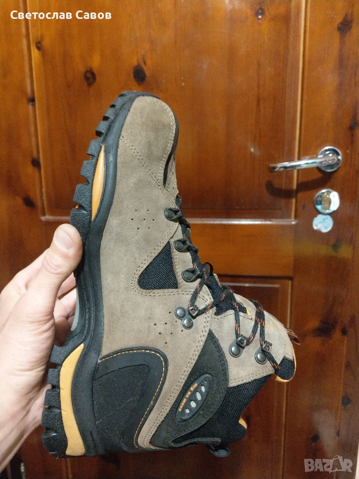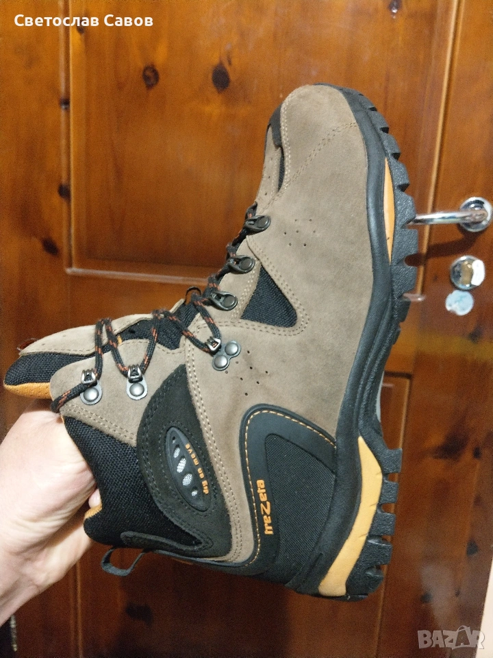 Trezzeta 43,5нм. 28,2см.Висок клас.Купувани са за 470лв. преди две години,и и не са ползвани почти.В перфектно състояние.Без никакви следи от употреба.Изцяло от естествена кожа,със специално направени отвори в горната част на обувката, които извеждат влагата от обувкката навън и не запарват изобщо и много стабилна и качествена подметка, която е с перфектно сцепление и не се хлъзга изобщо,дори и на заледени участъци.Произведени в Италия.Разгледайте и другите ми подобни обяви.
