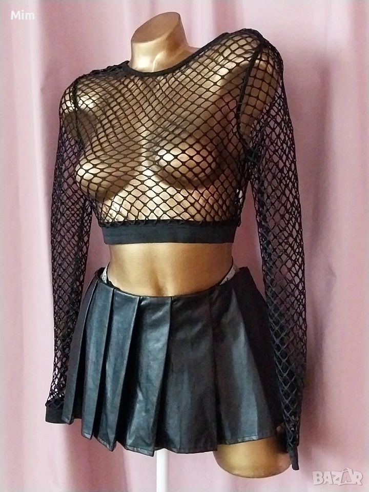 2- Кожена черна ултра къса пола на плисета ,по етикет е 4XL давам размера в см в снимките