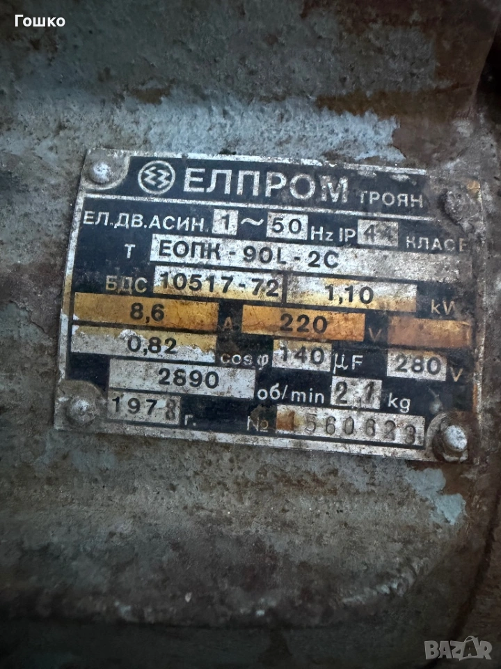 Монофазен електромотор 1.1lw, снимка 1 - Електродвигатели - 53516991 Монофазен електромотор 1.1lw, снимка 2 - Електродвигатели - 53516991 Монофазен електромотор 1.1lw, снимка 3 - Електродвигатели - 53516991 1/3