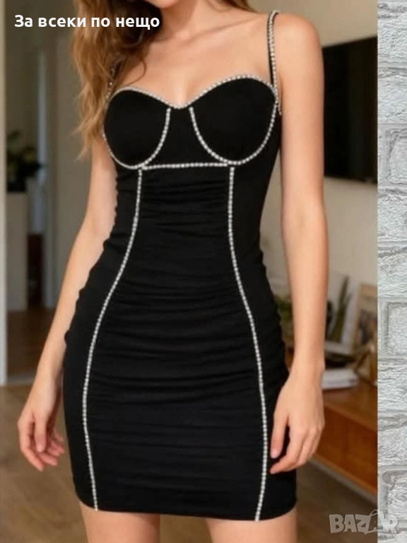 Елегантна черна рокля с камъни OLIVIA – модерна дамска рокля с ефектен блясък и изискан дизайн, подчертаващ фигурата. Стилна вечерна рокля, подходяща за парти, коктейл, бал, празници, клуб или специални поводи. Черна рокля с камъни, официална рокля с блясък, модерна вечерна рокля, секси дамска рокля по тялото, къса елегантна рокля, луксозна рокля за вечерни събития и впечатляваща визия.