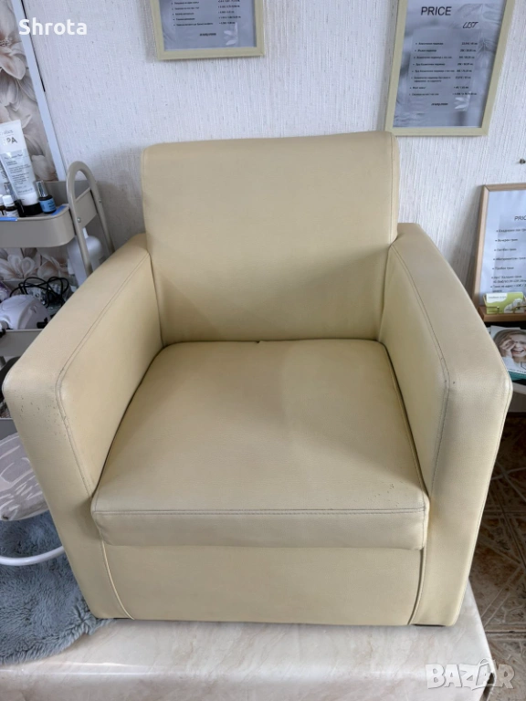 Удобно и стилно кожено кресло в бежов цвят. Подходящо за