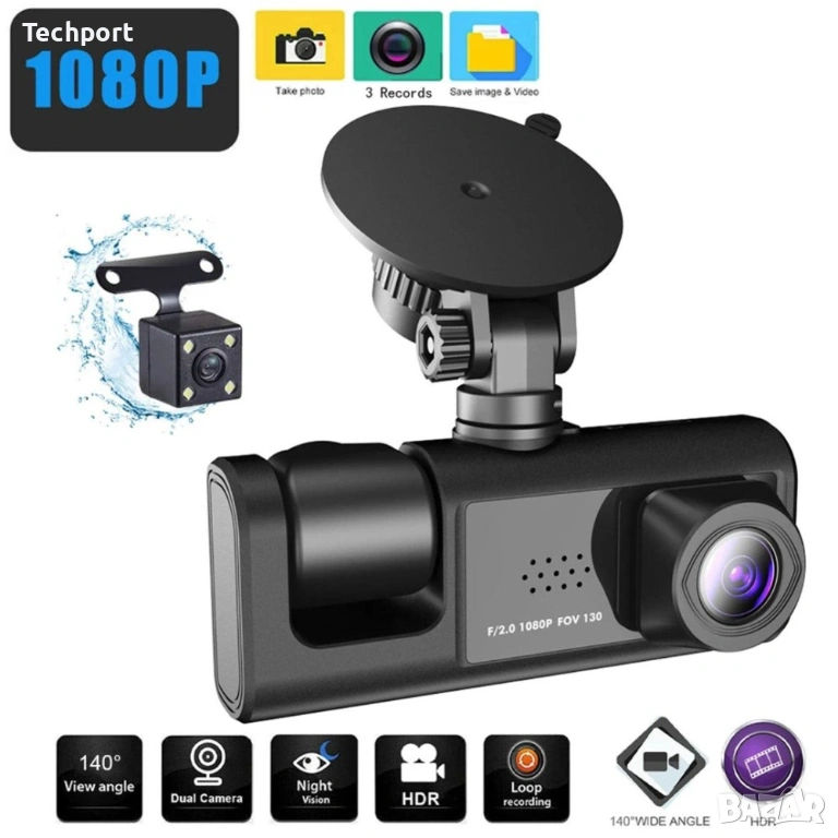 Видеорегистраторът предлага изключителен набор от възможности и функции на потребителя. Той е изключително полезен при натоварен трафик за проследяване на пътната обстановка. С помощта на 3 – каналната камера може да записвате навсякъде около вашия автомобил и вътре в колата ви.